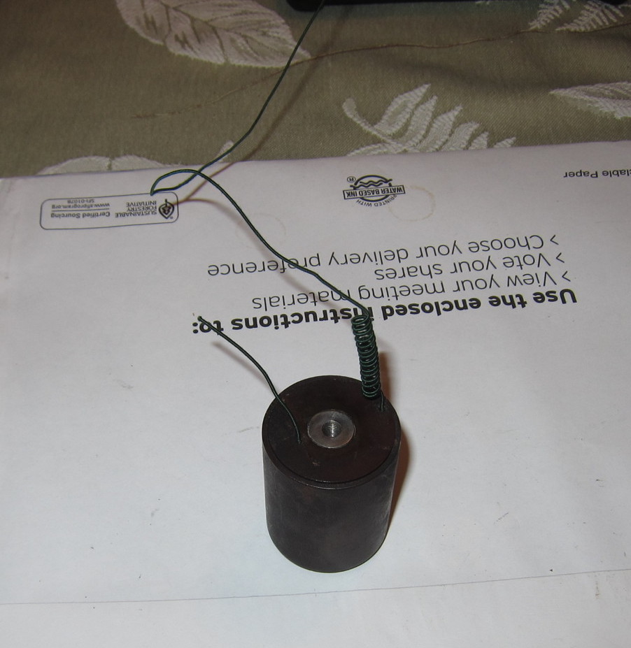 After awhile you will probably find yourself getting tired (or bored), so you can apply a C-clamp to the windings to hold them in place while you take a break. (see pictures below). When you reach the end of the wire, save about 8-10 inches and feed the end through the outermost hole. Replace the hard rubber coil cover and you are finished.