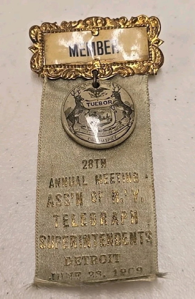 Close-Up of the Emblem on the 1909Telegraph Superintendents Ribbon |