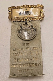 Below are some pictures of different telegraph ribbons and other pins that were given out during various conventions. Click on each thumbnail to view the full size image: