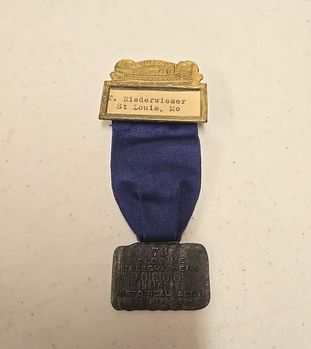 In 1880, a group called the Association of Old Time Telegraphers (O.T.T.) was formed, as a means to have a reunion of old telegraphers. The O.T.T. hosted annual conventions, at which the attendees received an ornate ribbon to wear during the event. At the most famous O.T.T. convention, in 1905, attendees were given a miniature fully-functional telegraph key in a cardboard box made by JH Bunnell.