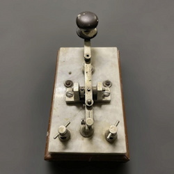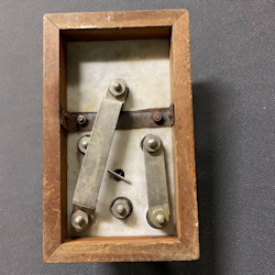 Marble-based spark key. Maker Unknown. Possibly Nanao Musen Denki. Note the heavy metal straps underneath for carrying high currents.