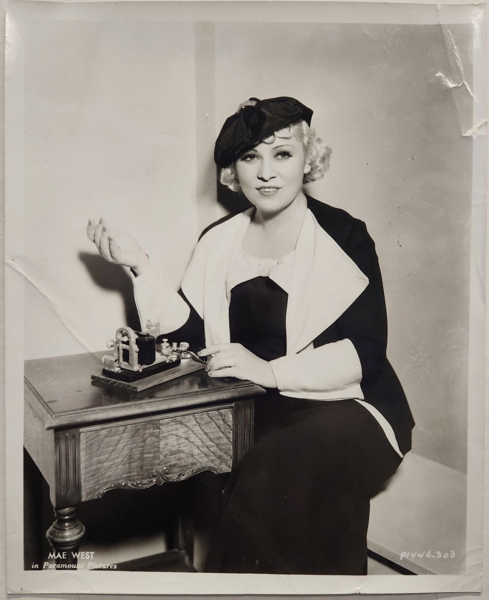 | Screenshot From the John Wayne Movie "The Telegraph Trail" (1933) Showing a Cylindrical Box Relay | Mae West Using the Telegraph to Signal the Opening of the World's Fair in Chicago, 1934 | Another Photo of Mae West at the 1934 World's Fair | Telegraphers in the Press Room of the Flemington, NJ Courthouse Setting Up for the Lindbergh Baby Murder Trial. October, 1934 |
